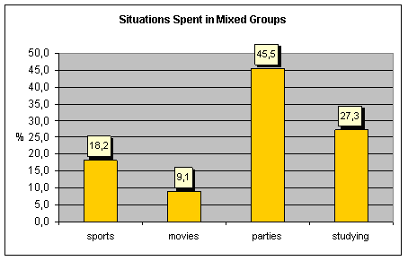4. How much time do you think that you spend with other foreign students, with Finnish students and in mixed groups of foreign and Finnish students? (only 21 questionnaires)